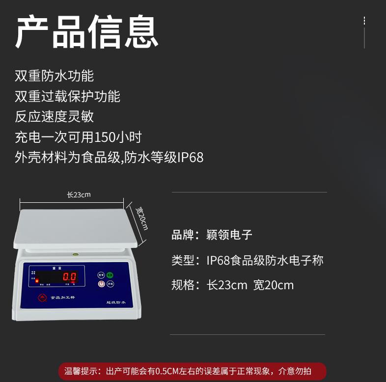 防水秤的目的就是防水防潮,以應(yīng)對(duì)那些潮濕、鹽霧等惡劣環(huán)境。而且防水電子秤的防水也有不同的防水級(jí)別,級(jí)別越高防水就越好,價(jià)格在一定程度上就越高。防水電子秤的出現(xiàn)特別是全方位立體防水電子秤的出現(xiàn),解決了以潮濕有水的環(huán)境而不能稱重計(jì)價(jià)的難題,對(duì)水產(chǎn)加工、海鮮加工、漁業(yè)生產(chǎn)都有重要的作用!其中香山防水計(jì)價(jià)電子秤在這方面做的就比較好: