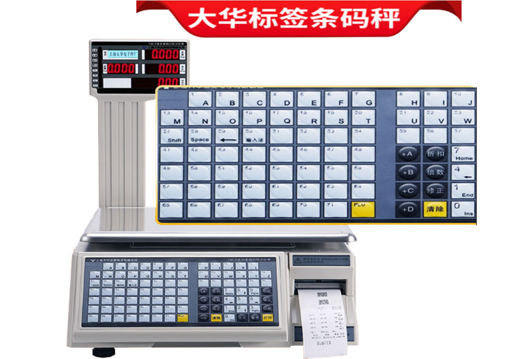 上海大華電子條碼秤|大華條碼秤|超市條碼秤|條碼打印計價秤|條碼秤設(shè)置|條碼秤 大華條碼秤既可以稱重、收銀又可以打印不干膠小票紙,實現(xiàn)了一秤多用,是做生意的好幫手!