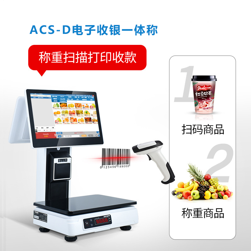 穎領(lǐng)ACS-D是一款智能觸屏稱重收銀一體稱!